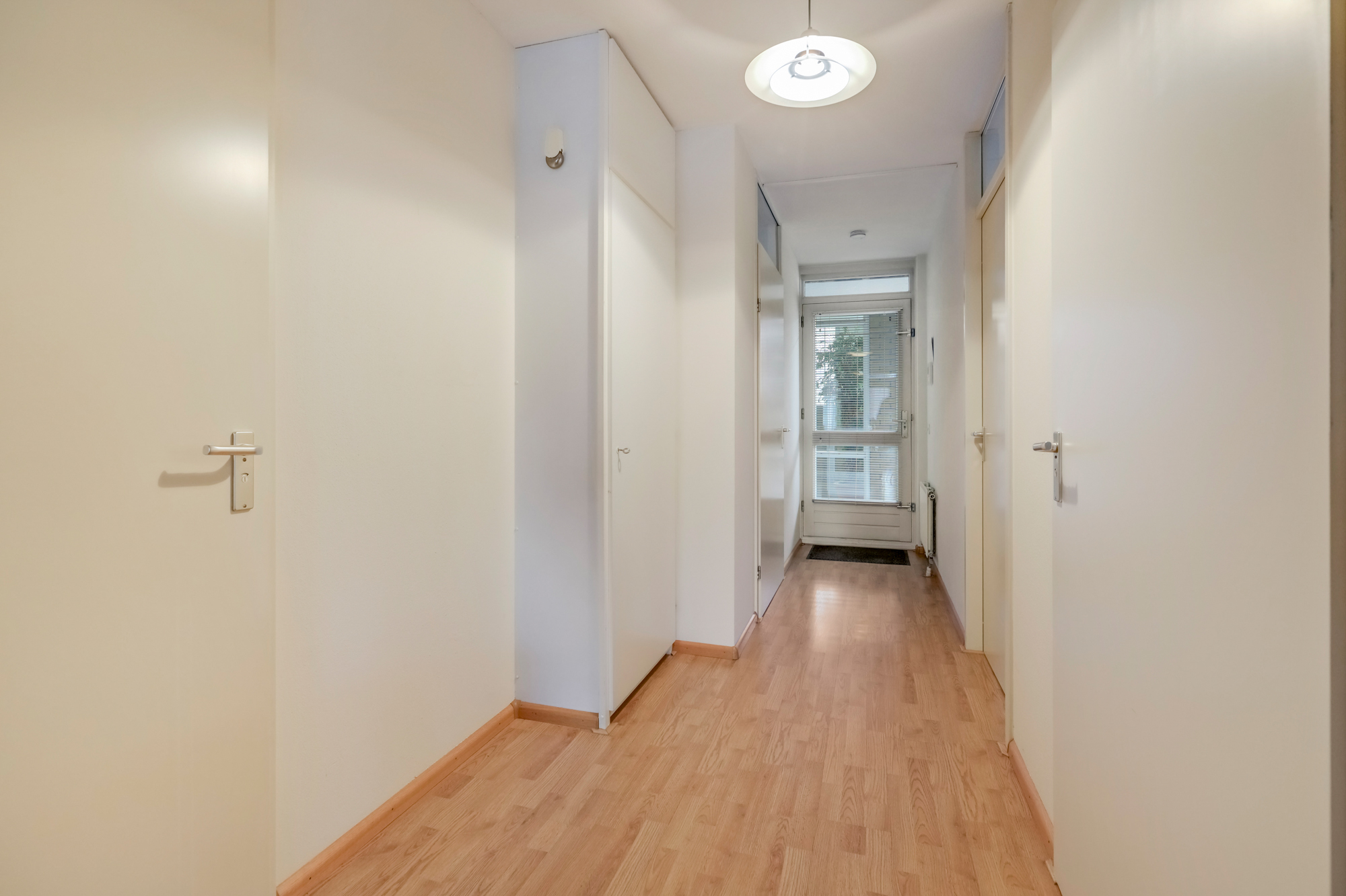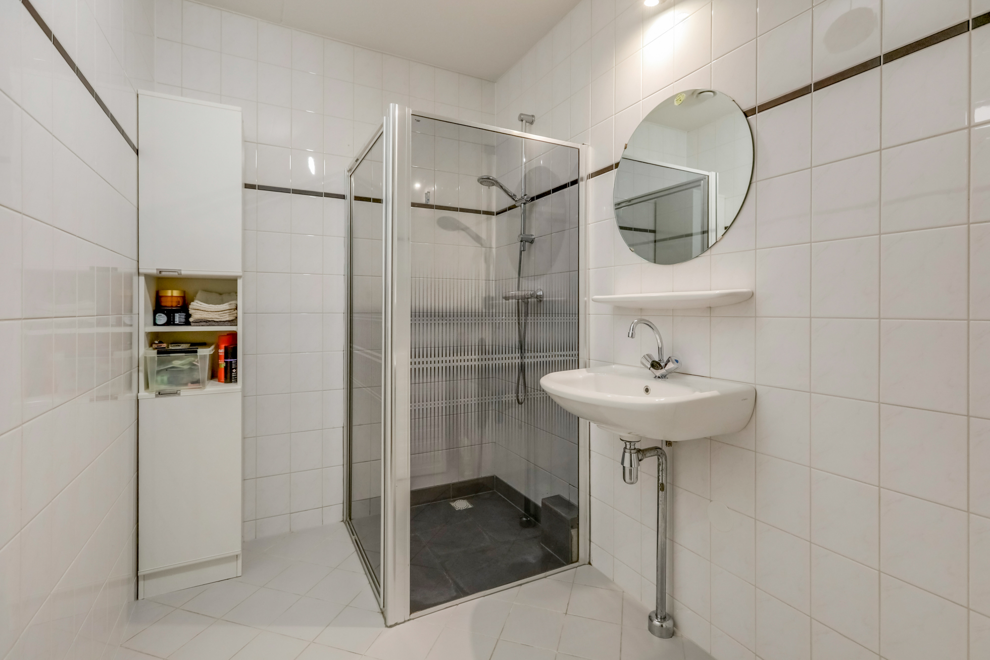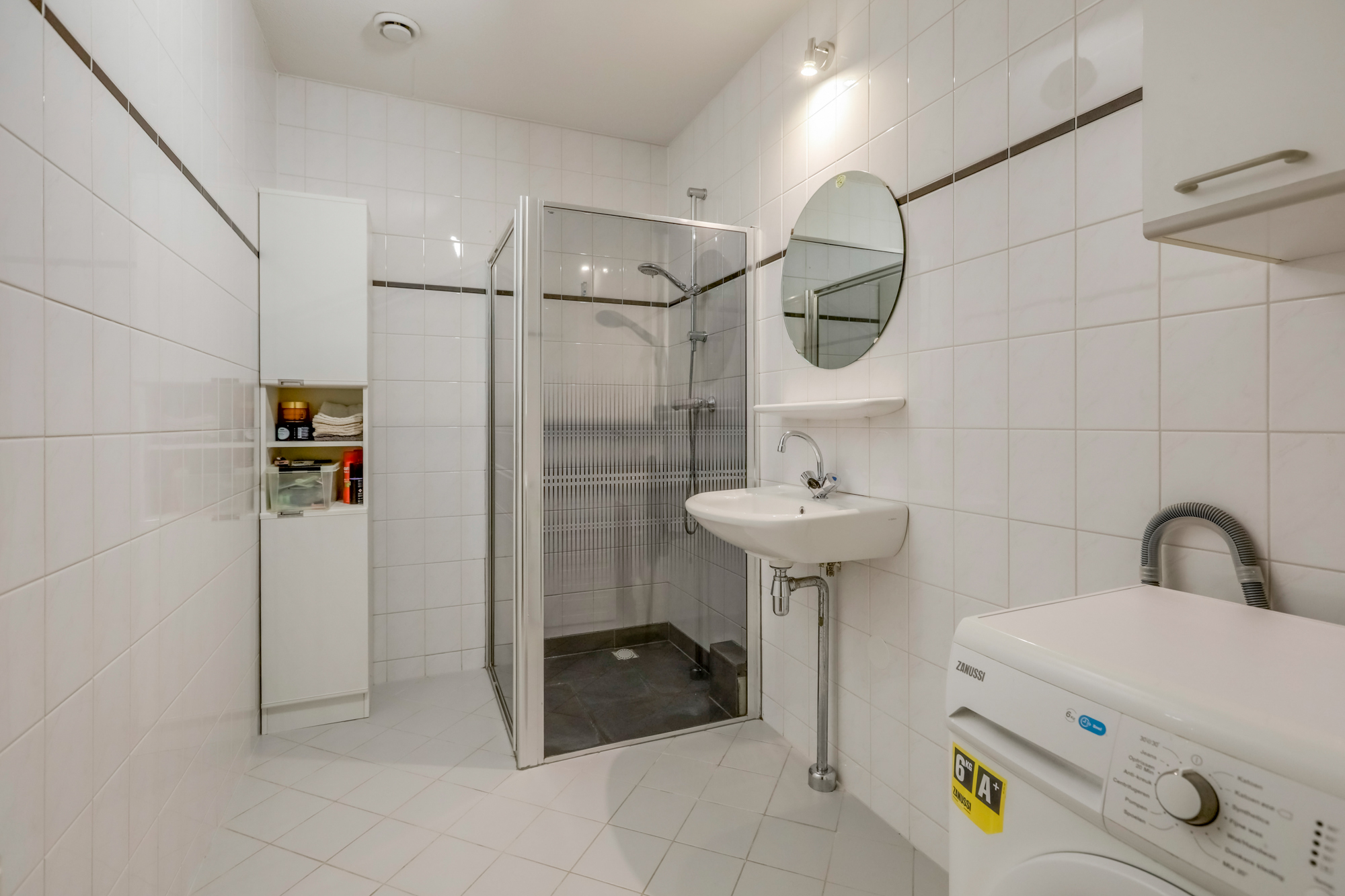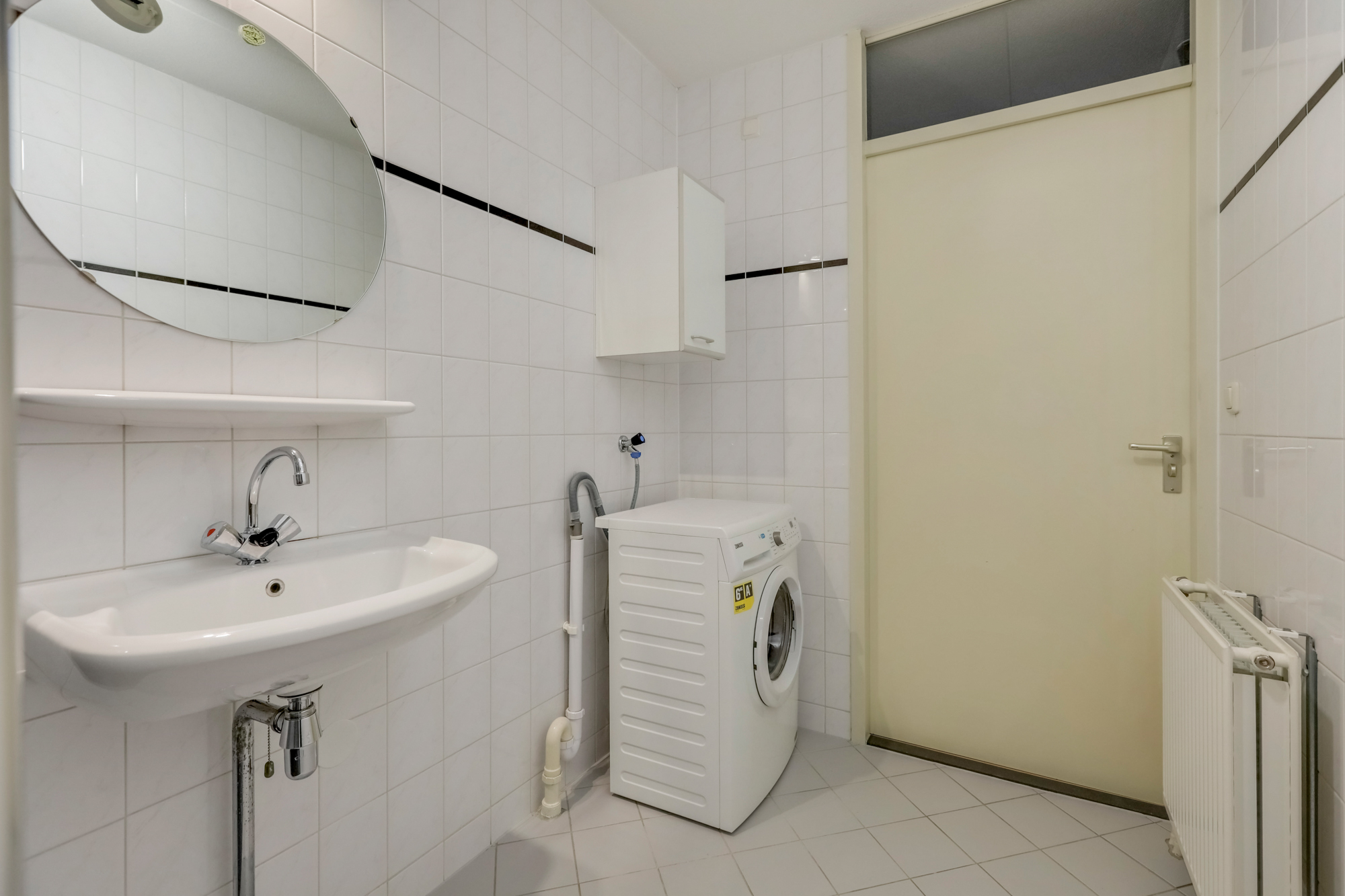 Via trap of lift bereik je de voordeur van het appartement. Entree met hal, meterkast, separaat toilet met fonteintje, badkamer voorzien van wastafel, douchecabine en aansluiting voor witgoed.