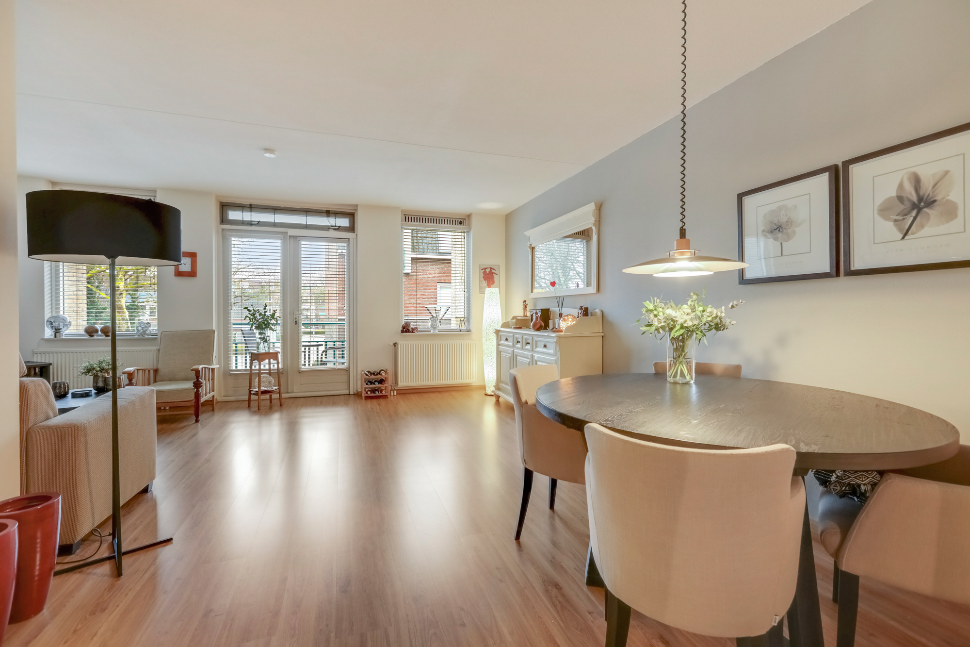 • Ramen voorzien van raamdecoratie