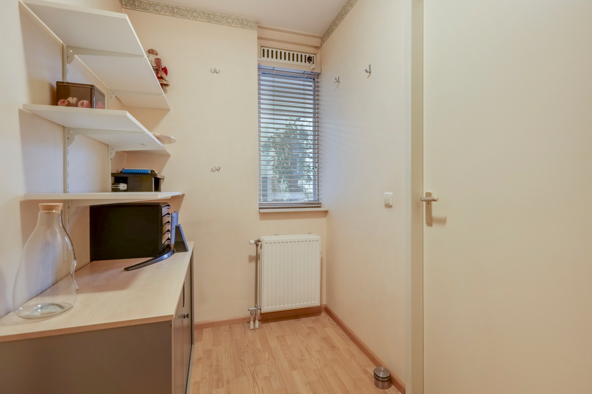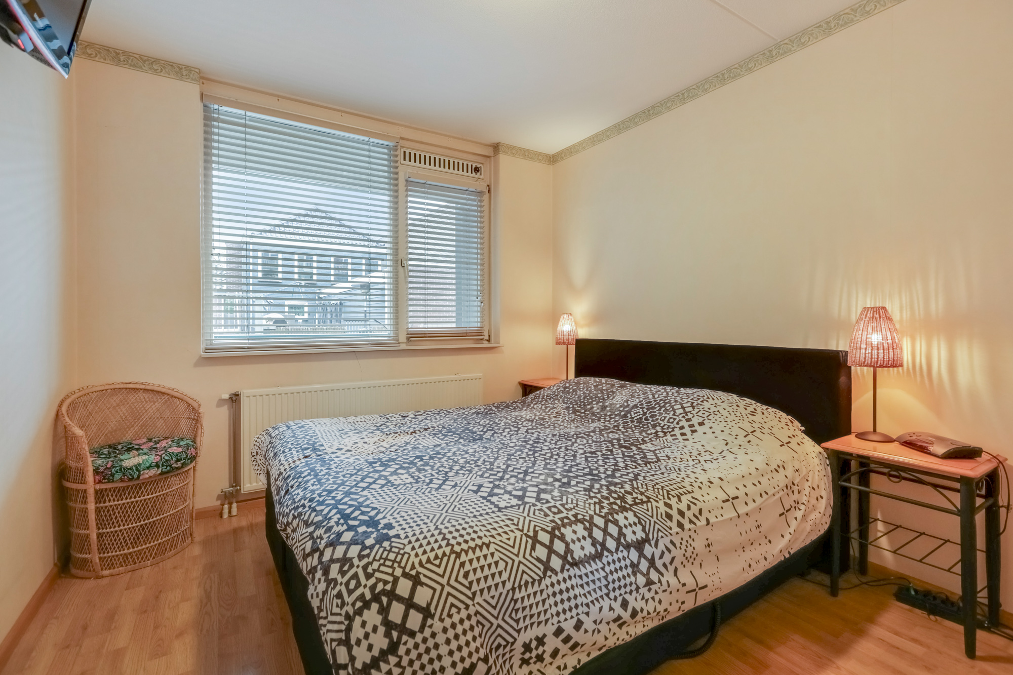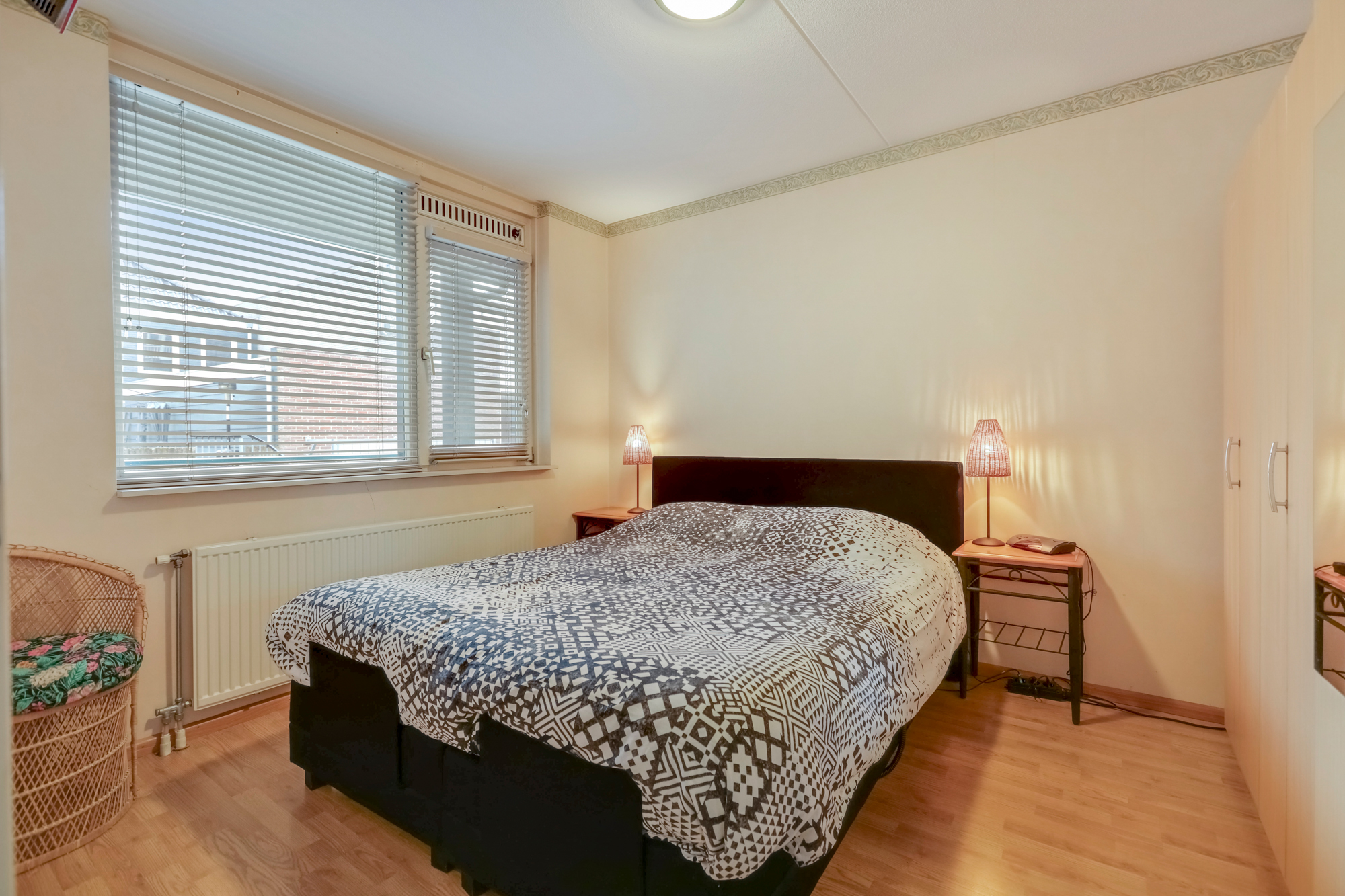 Verder zijn er twee slaapkamers waarvan de ouderslaapkamer ruim bemeten is. De tweede (slaap)kamer geeft ook toegang tot een praktische berging met o.a. c.v. opstelling.