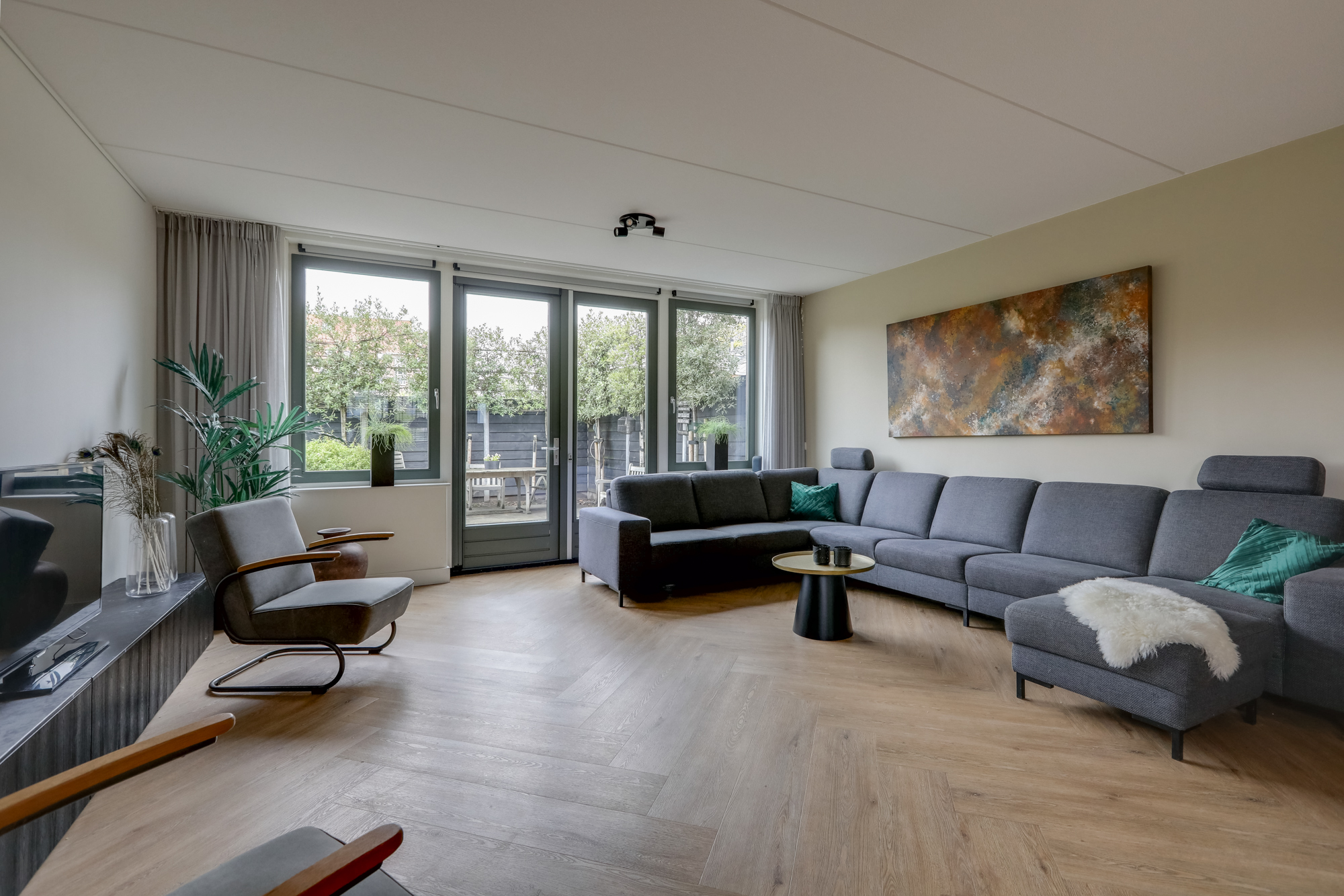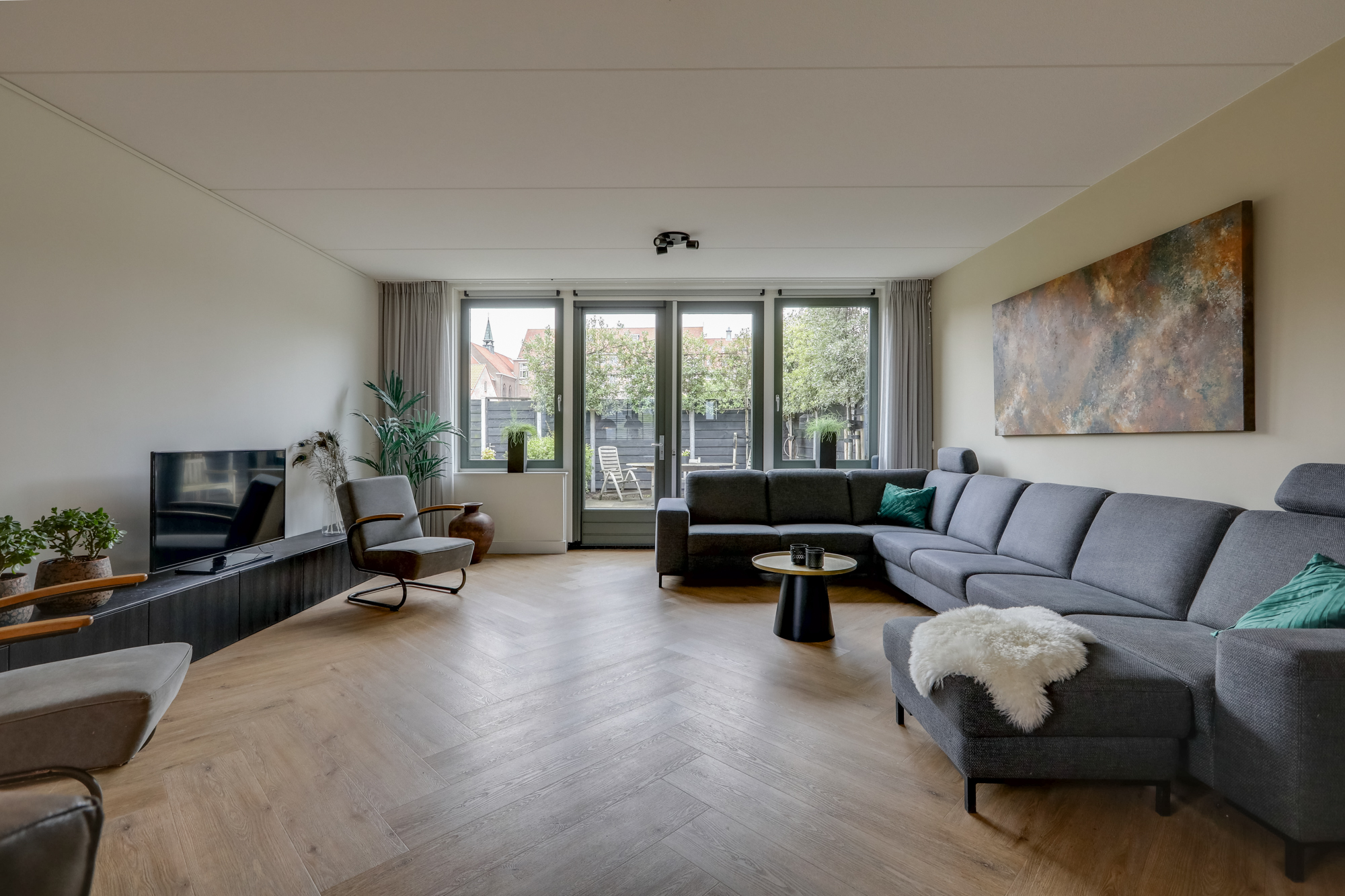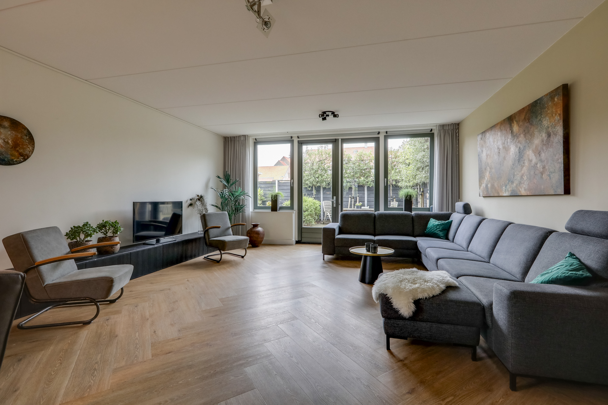 • Ruime woonkamer (2,40 m uitgebouwd) met openslaande deuren naar de tuin