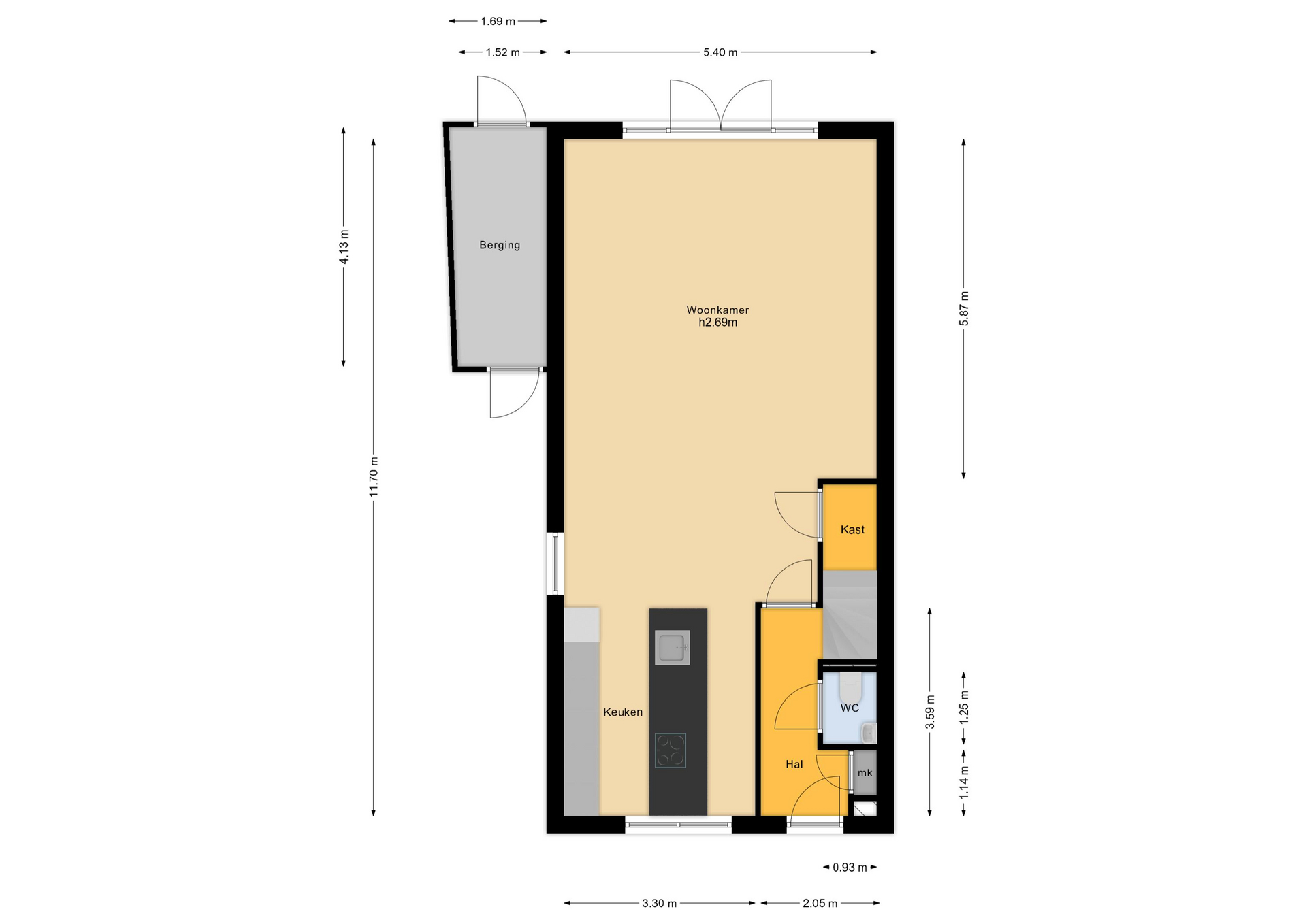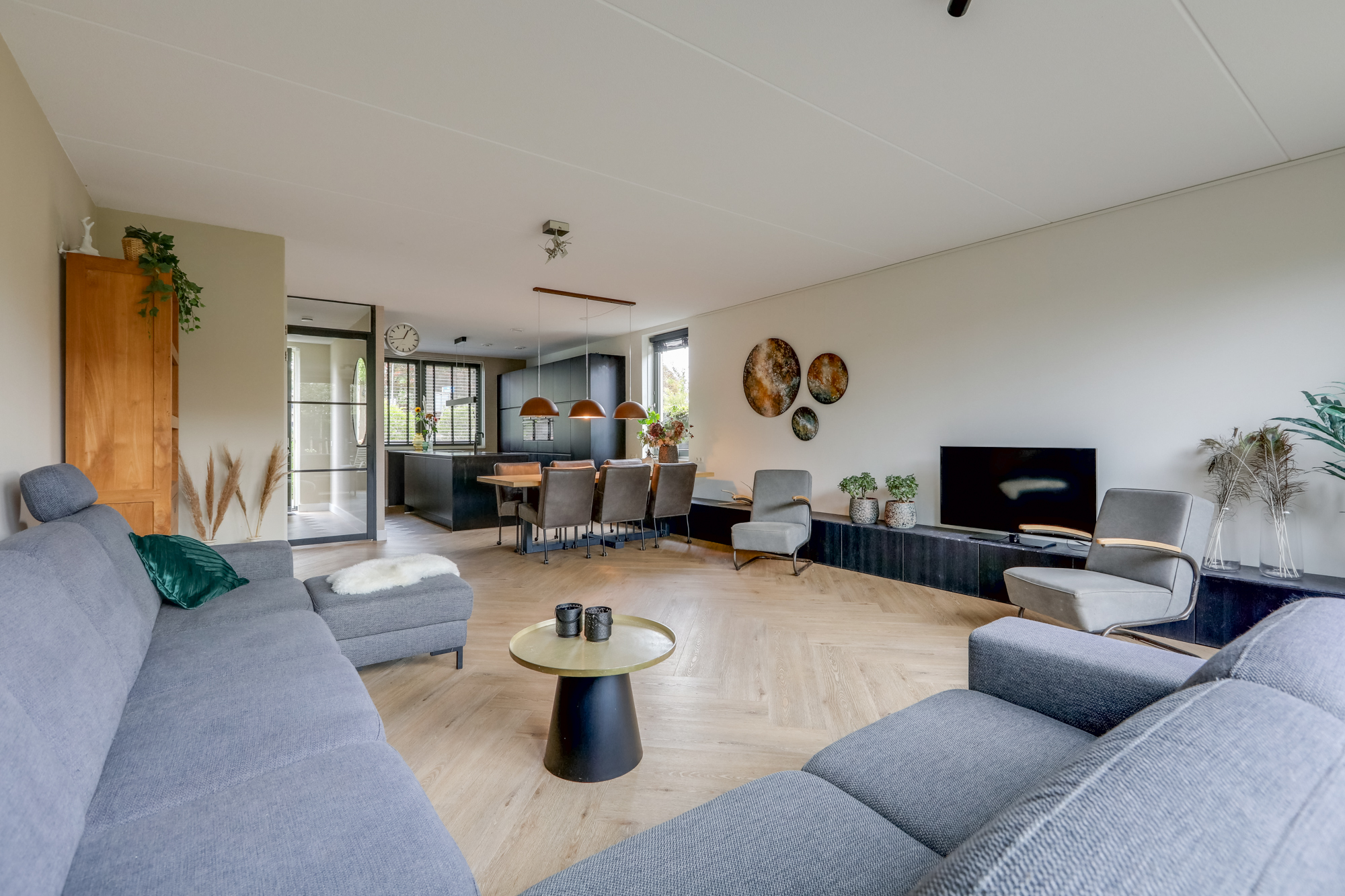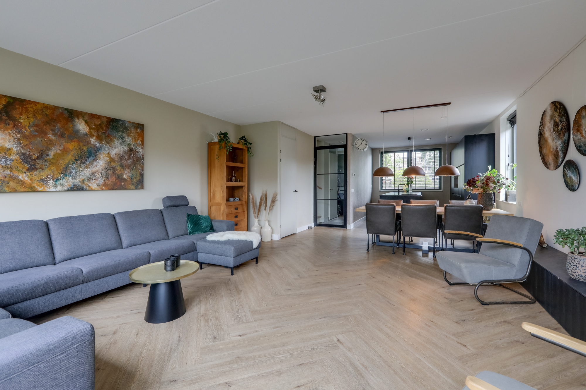• Ruime woonkamer (2,40 m uitgebouwd) met openslaande deuren naar de tuin