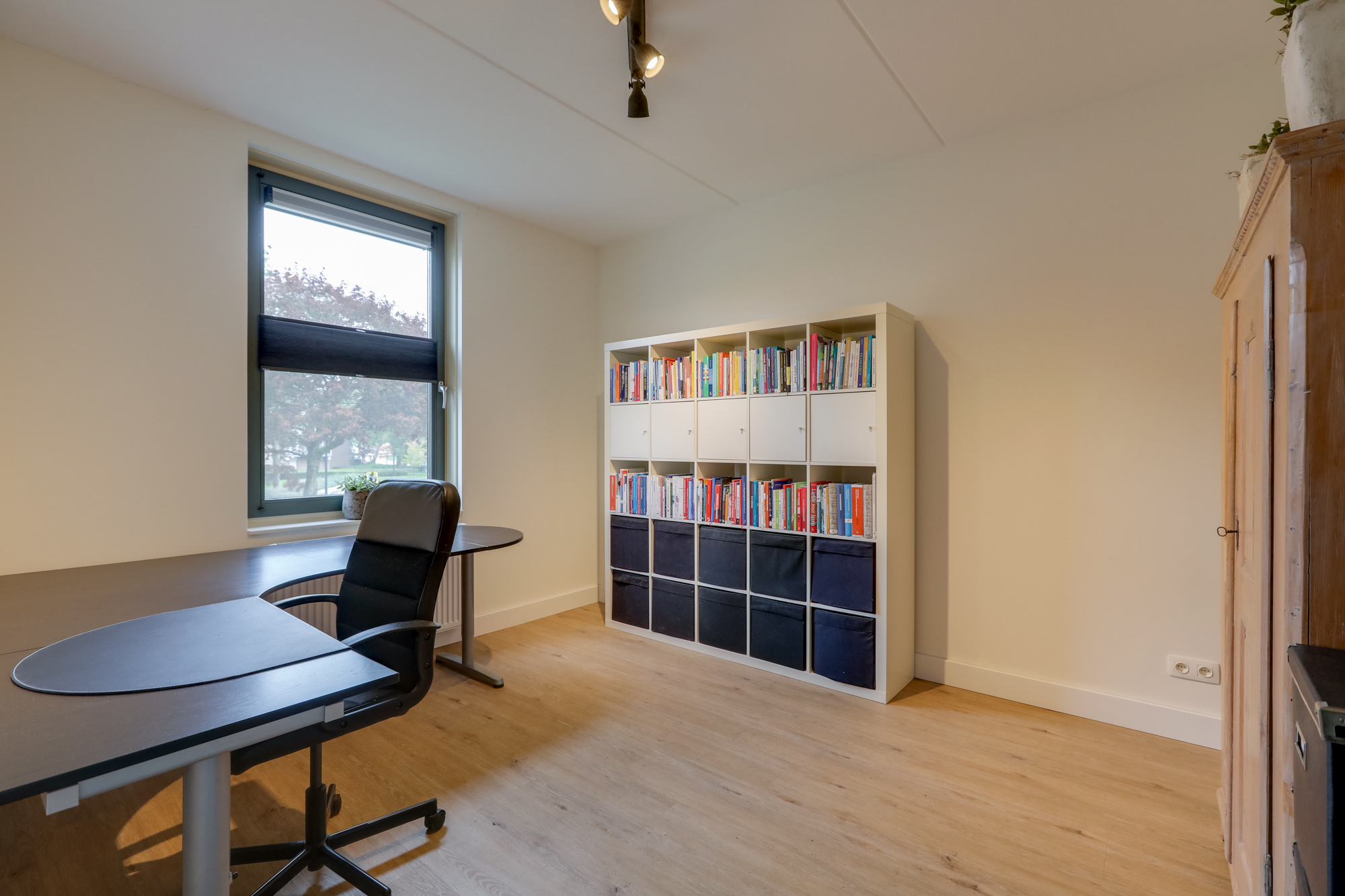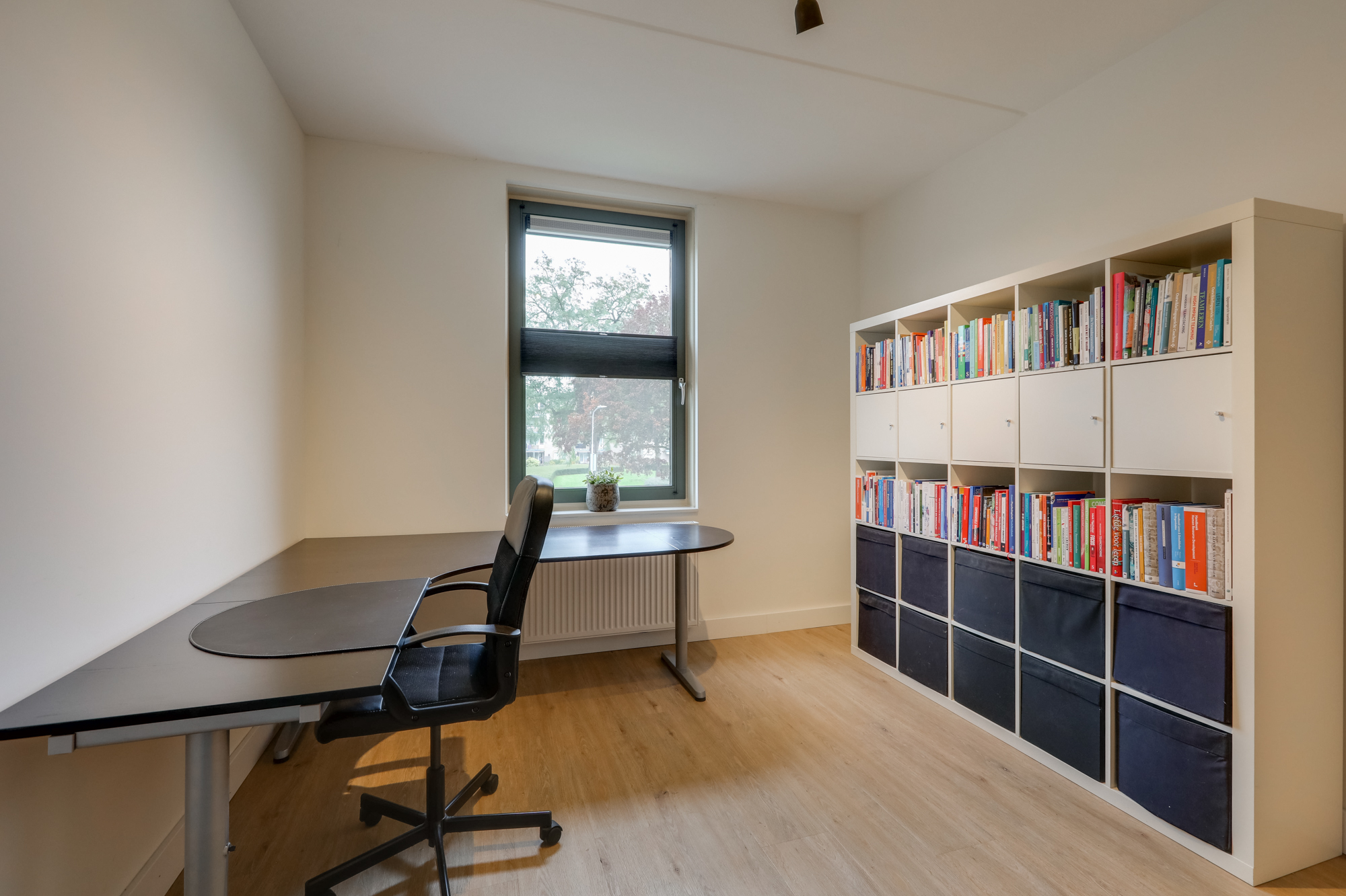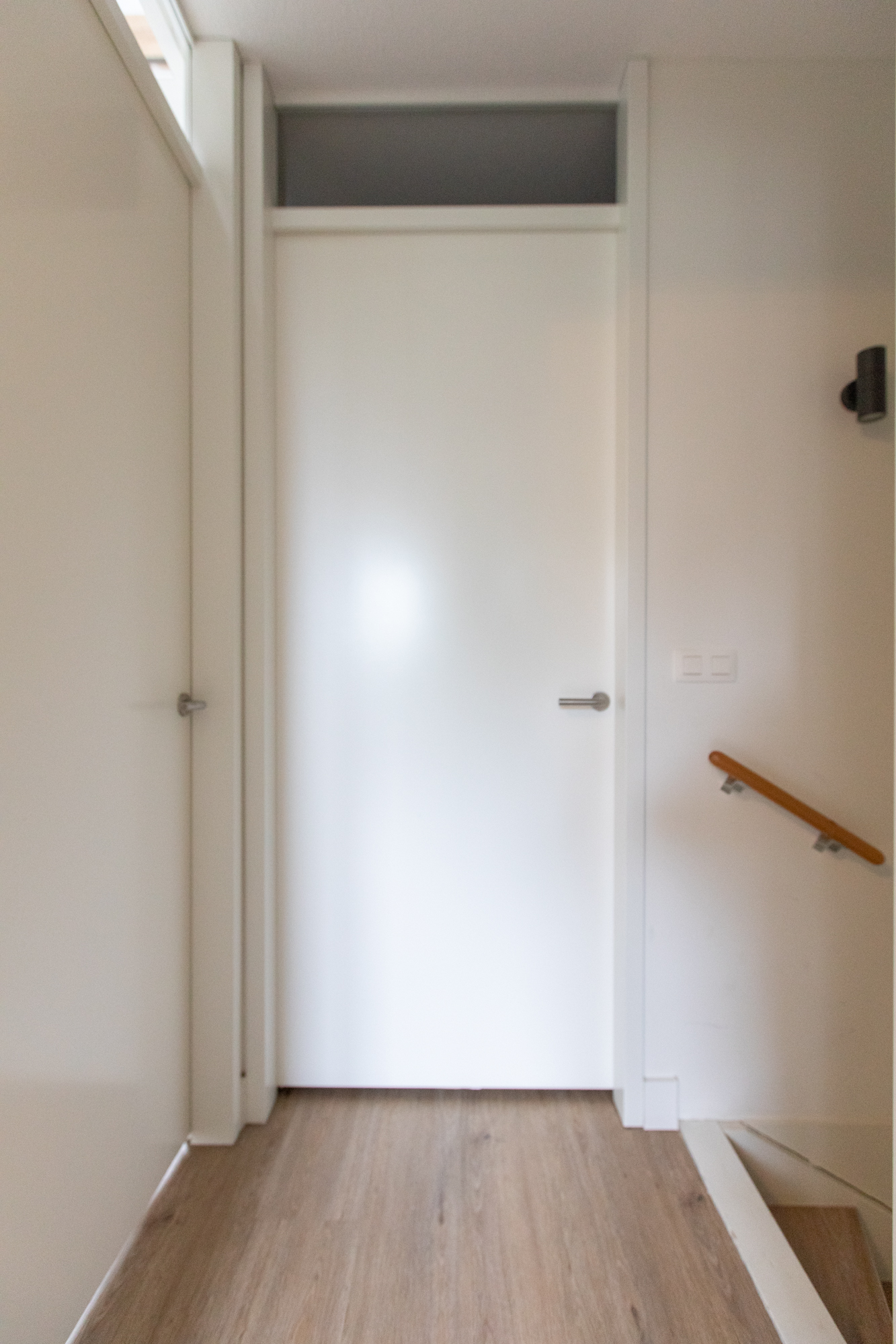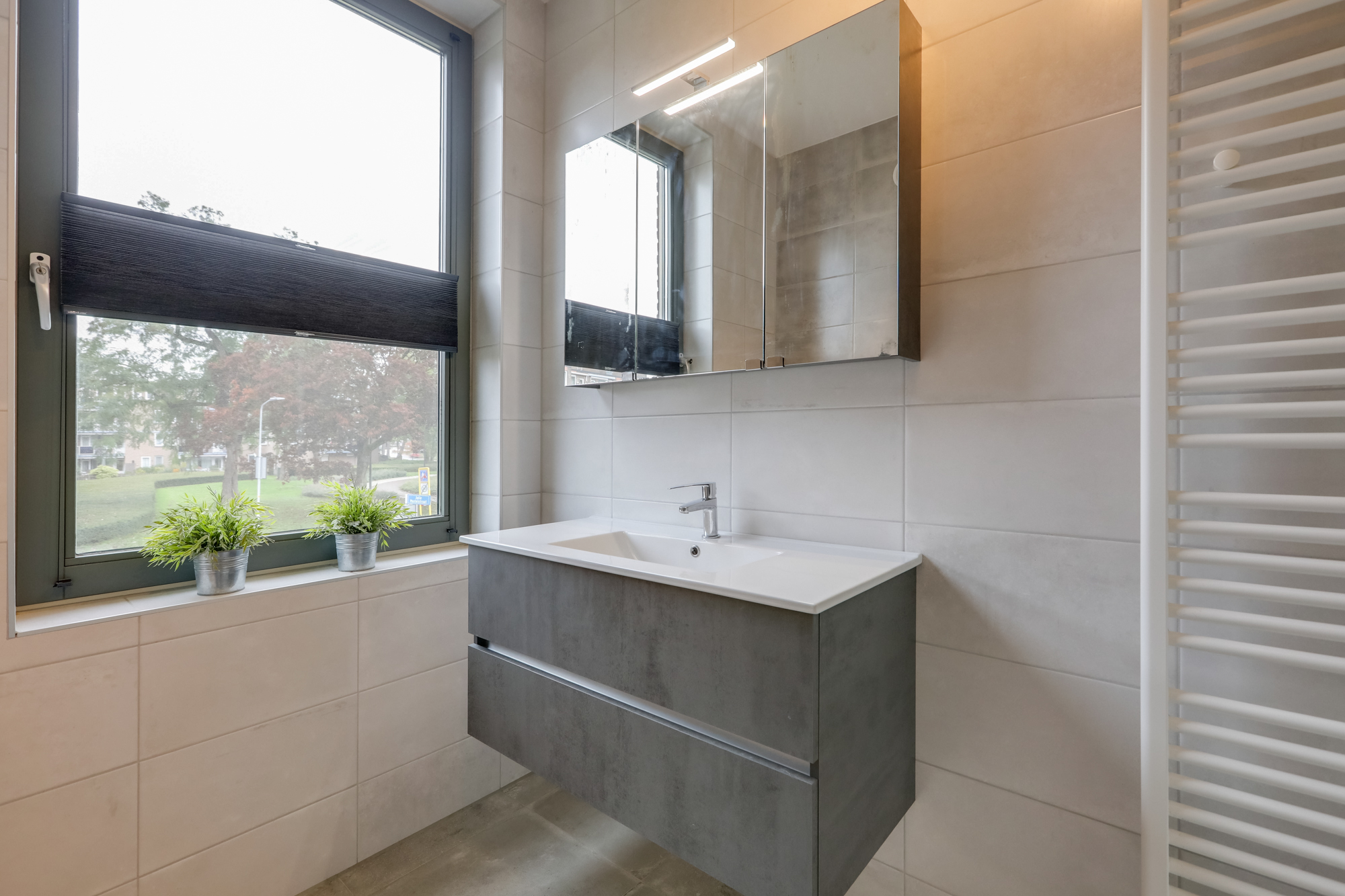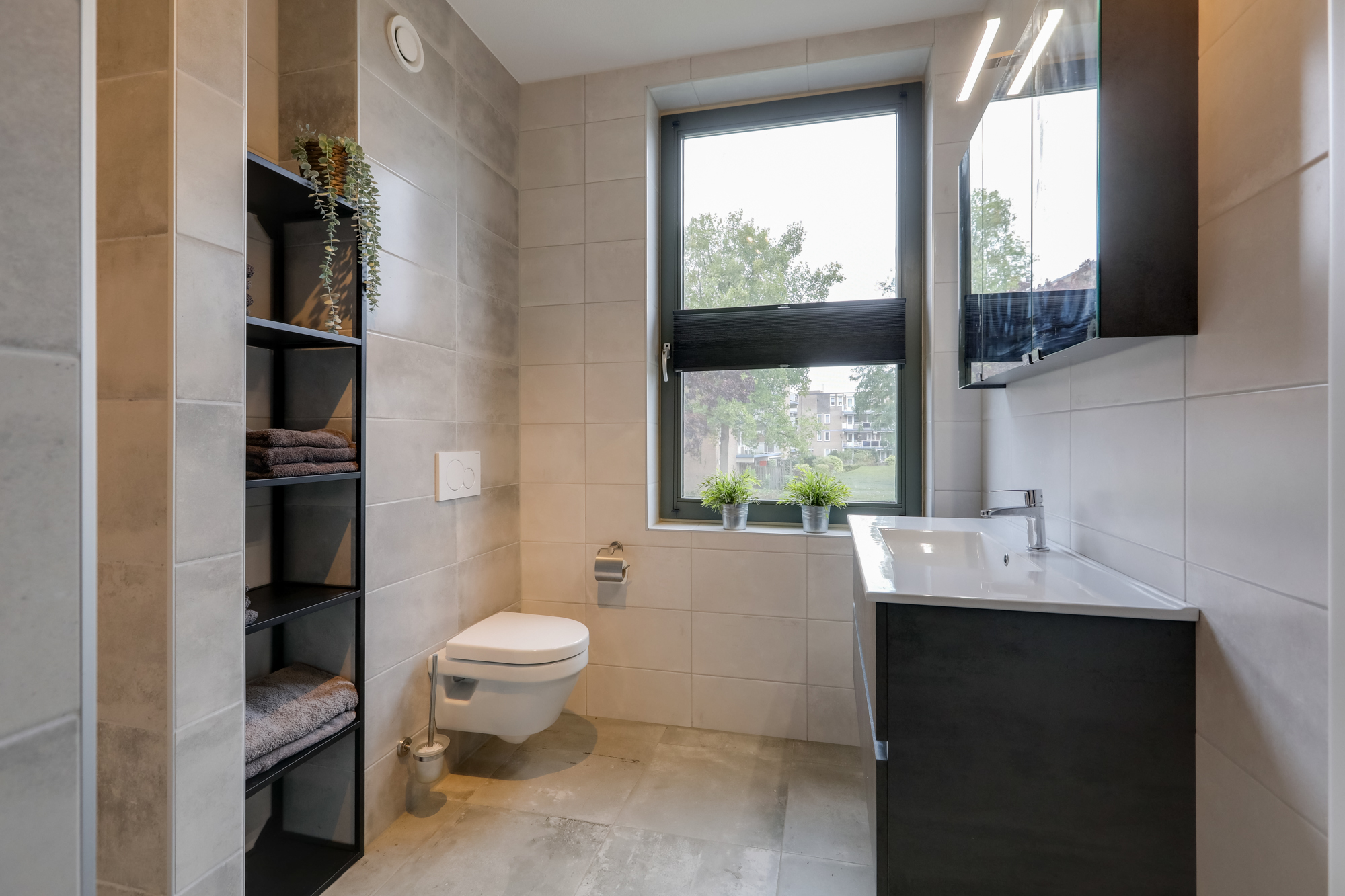 Vanaf de overloop bereik je drie slaapkamers, waarvan één momenteel als kastenkamer is ingericht. De moderne badkamer is voorzien van een inloopdouche, hangcloset, wastafelmeubel en designradiator.