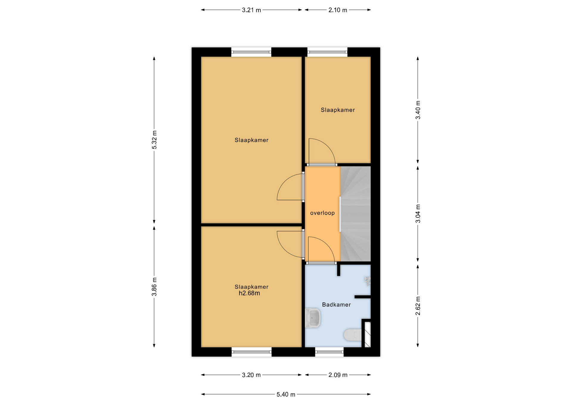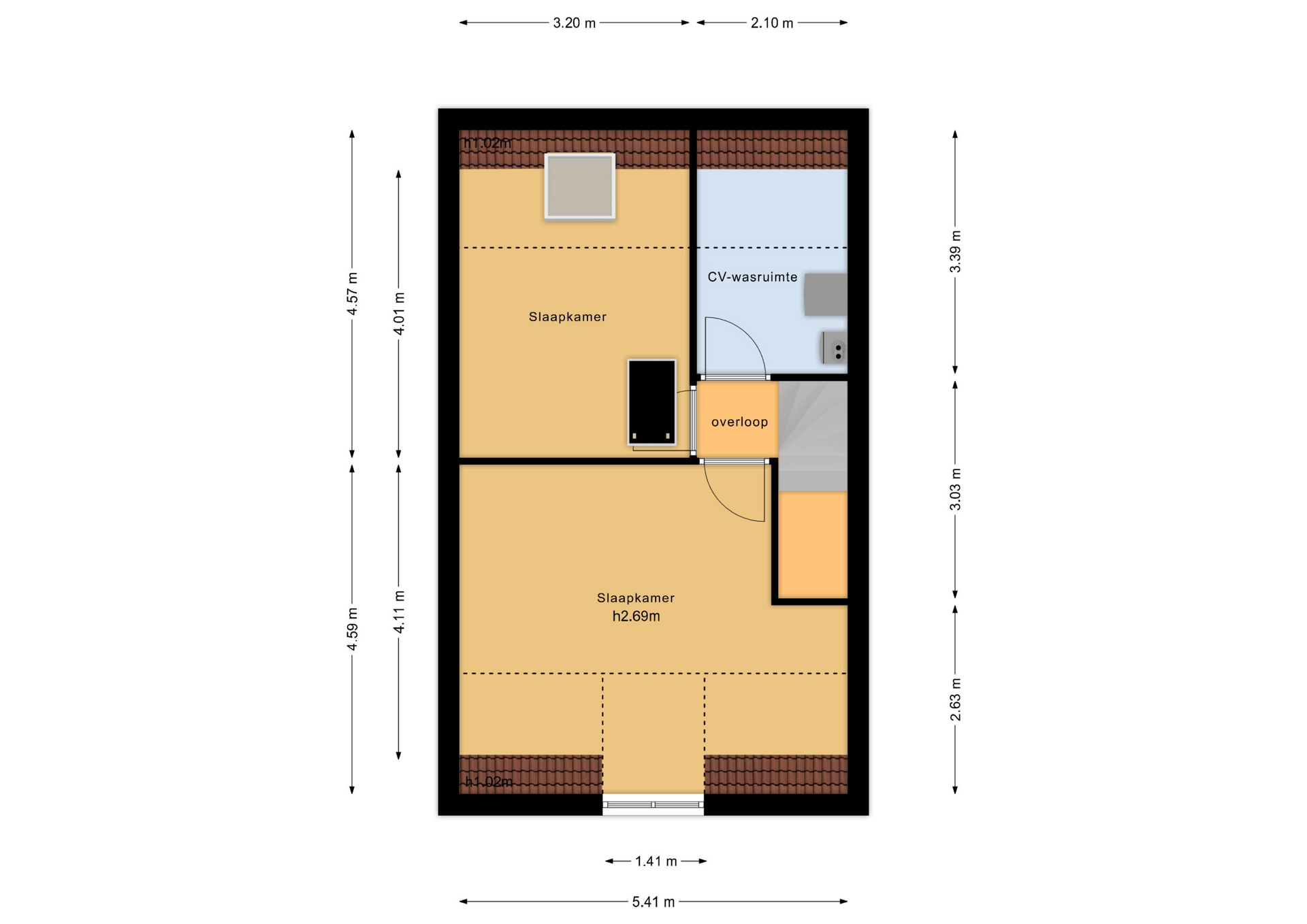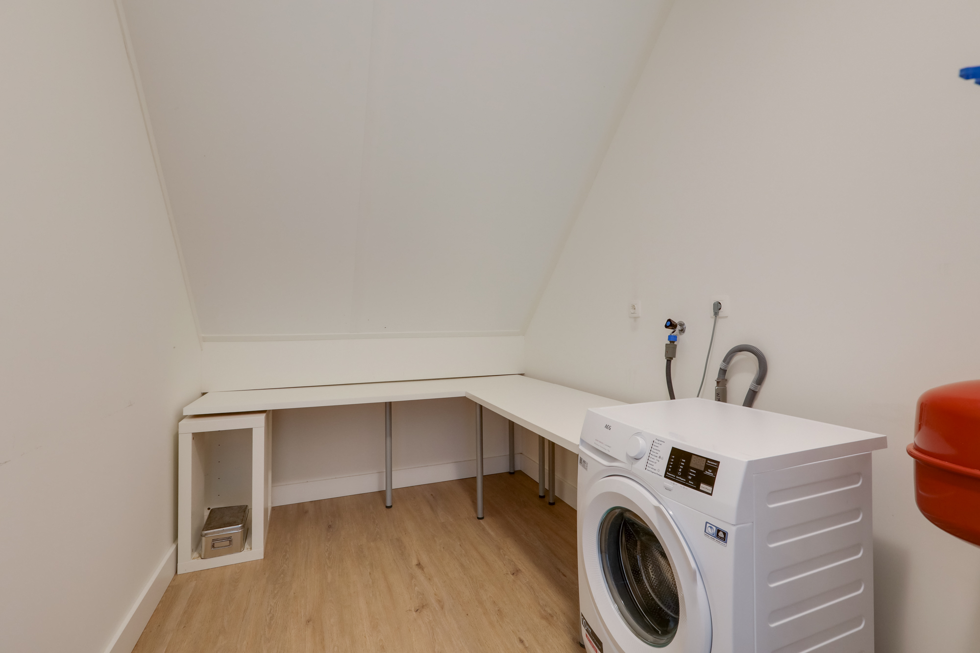 Hier bevinden zich twee ruime slaapkamers, één met dakkapel en de ander met dakraam en een koud-warm water aansluitingEn een derde afsluitbareruimte met Atag HR-combiketel en wasmachineaansluiting.